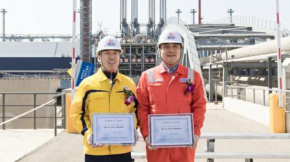 B体育-B体育亚洲官方网站-BSPORT和国家管网天津接收站共同举行了B体育-B体育亚洲官方网站-BSPORT首船LNG接卸和首车发车仪式。国家管网天津接收站总经理张林松和B体育-B体育亚洲官方网站-BSPORT智能贸易及输配业务群副总经理尹明分别代表双方互换纪念铭牌。